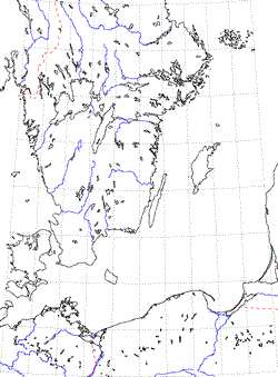 All passes received and within the defined areas were first quality checked, i.e. percent coverage of the area, missing lines or area at the edge of swath was indicated. For the Baltic Sea area, 4 passes per day were processed and interpreted for the occurrence of algal blooms, suspended sediments and various temperature anomalies, both near the coast as well as in the open sea. For the North Sea and the Gulf of Lion areas, one pass per day per area was interpreted. All detected features were described in text and often marked in a subset image and then distributed from the local web server. An example of the extensive bloom during 1997 can be seen in Figure 3-3. The image annotations have not been transferred into the HDF files, but are available on the web server. During the intensive bloom periods in July-August parallel interpretations on the same AVHRR image but with two different operators have been performed. This ad-hoc quality evaluation indicates that the differences imposed by two operators are only minor. When a difference occurs it is most often limited to the exact location of the outer (visible) limit of the bloom (surface accumulation of the cyanobacteria).