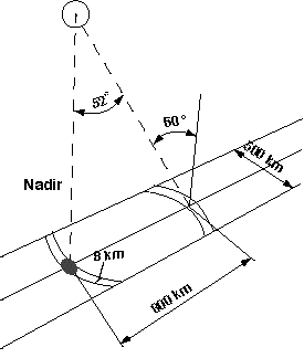 The ATSR-2 has three channels in the visible part of the spectrum (560, 670 and 870 nm), two in the near infrared (1.6 and 3.7 mm) and two in the thermal infrared (11.0 and 12.0 mm). The two thermal infrared channels are used to determine the SST, as they correspond to atmospheric windows (wavelengths where atmospheric absorption is low) close to the peak emittance of the sea surface. The slight difference in atmospheric absorption between these two channels, combined with the two look angles, is used to correct the SST value for atmospheric effects. The 1.6 mm channel is used to detect clouds in daytime images, whilst the 3.7 mm channel is used to detect clouds, and as an additional atmospheric correction channel, in night-time images. This latter channel is not only in an atmospheric window, but is also relatively insensitive to the radiation emitted by the sea. The 3.7 mm channel is particularly sensitive to the presence of water vapour. In general, the ATSR data for night-time images will be more accurate than for day time images because of the presence of the 3.7 mm channel for additional atmospheric correction.
