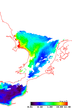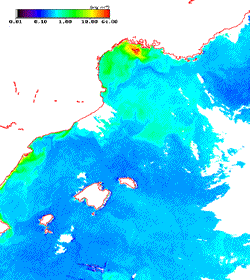 Time series of ocean colour data collected by the Coastal Zone Color Scanner (CZCS) (Hovis et al., 1980) were used to derive long-term statistics of water constituents for all the Clean Seas test sites. The European CZCS data set (1979-1985) originates from the OCEAN project, established in 1990 by the JRC EC and the ESA (Barale et al., 1999). The historical data a total of 5554 images, collected on a daily basis when favourable meteorological conditions occurred had been processed to apply sensor calibration, to correct for atmospheric contamination, and to derive chlorophyll-like pigment concentration (Sturm et al., 1999). Individual pigment images were generated for each available day, co-registered using the same geographic projection and resolution, with a 1 km pixel size, and then averaged pixel by pixel, to compute monthly and annual composites of each variable.
