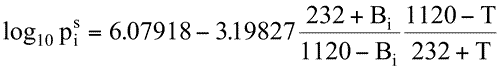 with Bi: Boiling temperature in °C at 760 mmHg of the ith component.