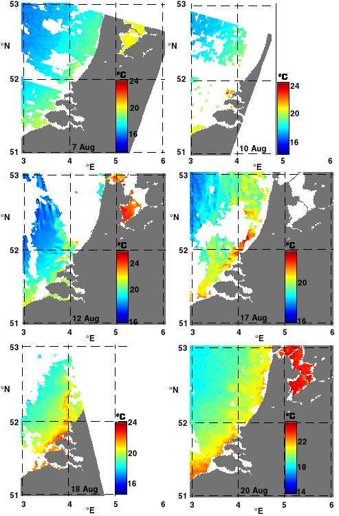 It is rather natural to consider SST as a passive tracer in the open ocean, but this could cause some problems in coastal areas for several reasons. In particular the radiative solar flux can cause temperature differences of up to several degrees between day and night in shallow water. While being useful for comparison and first calibration of hydrodynamics fields, it is recommended that such data be used with caution for assimilation into a model.