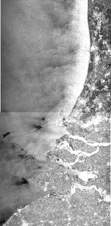 Three time periods have been used: 30th March-7th April 97, 7th-21st August 97 and 10th-18th May 1998. During these periods several interesting hydrodynamic and/or turbidity patterns were observed in SST, colour and SAR images (plume signature depicted by SST structures and dark radar backscatter area).