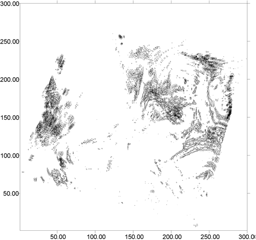 Figure 4-13. Discrete oil spill extracted from a SAR image (only the two spills at the bottom were studied)