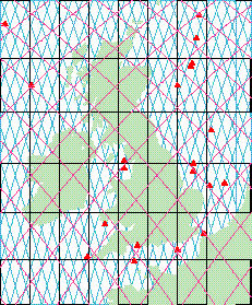 Figure 1. Locations of in situ data (red triangles) and altimeter tracks . Magenta lines indicate TOPEX tracks (10 day repeat), blue lines ERS-2 tracks (35 day repeat).