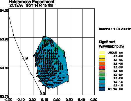 Figure 2. HF radar wave data at Holderness. Arrows indicate wave direction. (Courtesy L. Wyatt, Sheffield University, EU MAST SCAWVEX project)